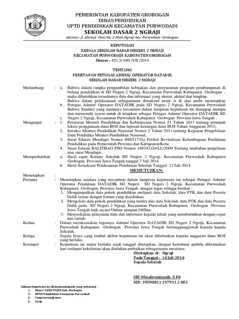 Pengangkatan admin/operator sekolah sd gmim picuan. Website resmi desa kesambirampak artikel 230. Untuk yang membutuhkan file contoh sk. Sk tentang pengangkatan pengurus karang taruna website.