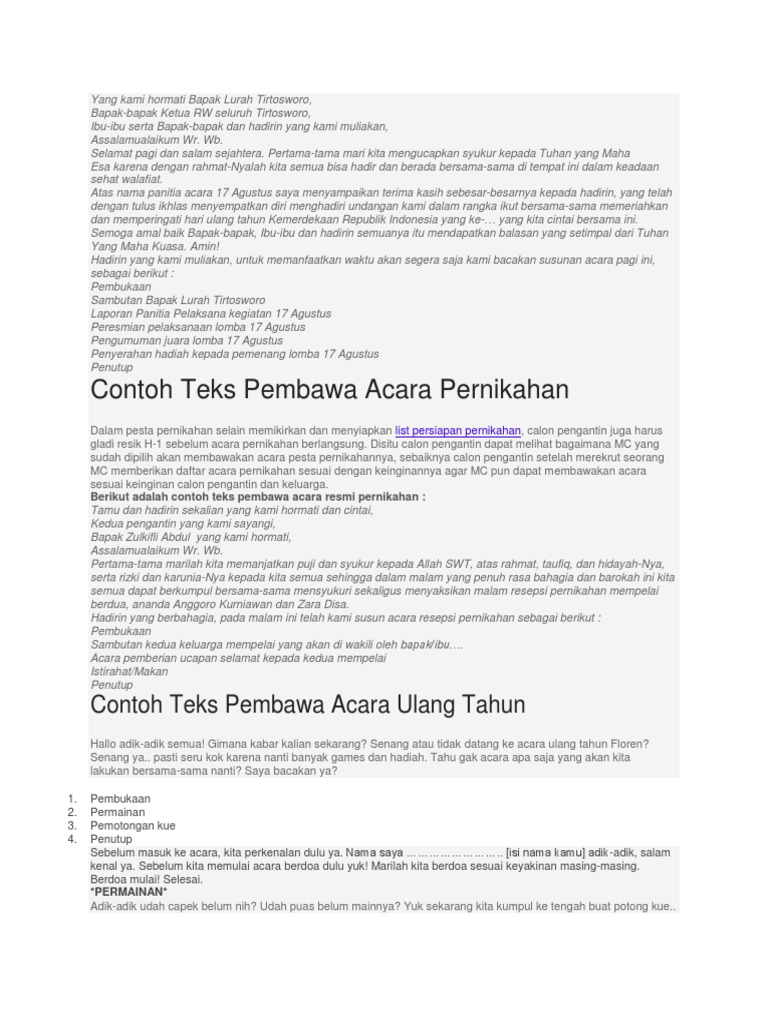 Untuk yang pengen lihat run down alias susunan acara kuliah umumnya, bisa klik susunan acara kuliah umum. Contoh teks pembawa acara mc perpisahan sekolah. Berikut contoh naskah pembawa acara lomba 17 agustus. Contoh naskah pembawa acara / mc.
