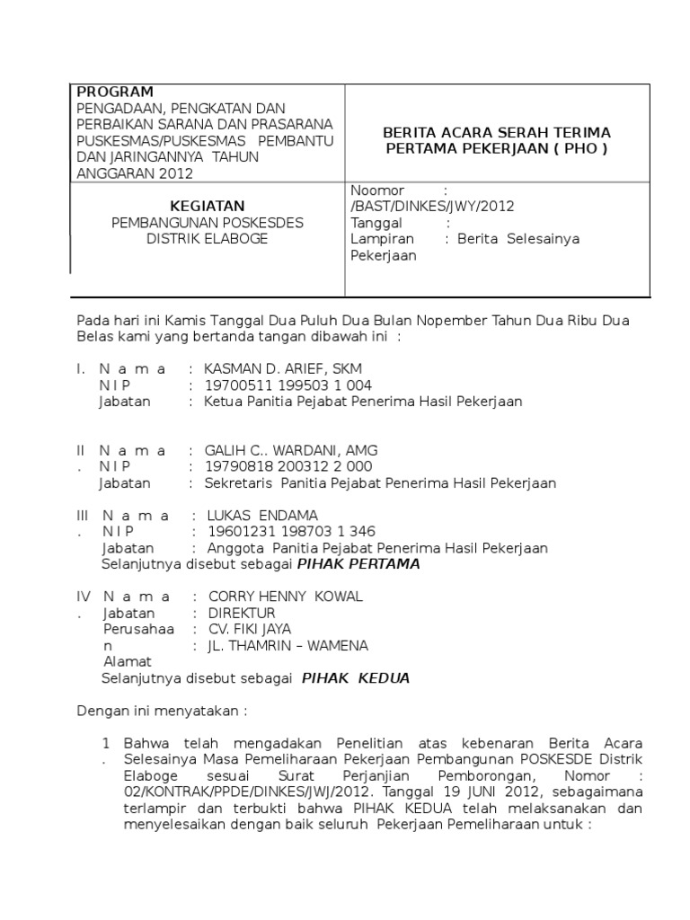 Bahwa, berita acara ini merupakan bagian dari pelaksanaan perjanjian dan sekaligus sebagai tanda terima barang diantara para pihak, dan karenanya merupakan suatu kesatuan dan bagian yang tidak terpisahkan dari perjanjian. Contoh berita acara serah terima pekerjaan. Bahwa, berita acara ini merupakan bagian dari pelaksanaan perjanjian dan sekaligus sebagai tanda terima barang diantara para pihak, dan karenanya merupakan suatu kesatuan dan bagian yang tidak terpisahkan dari perjanjian. Berikut ini akan dijelaskan mengenai hal tersebut.