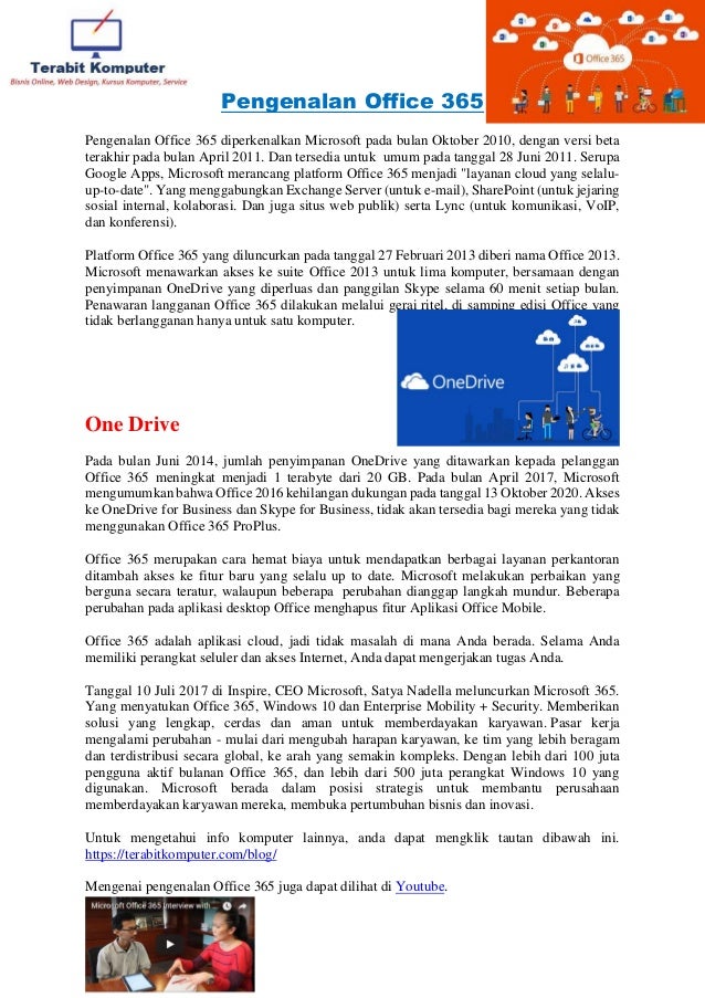 Syaratnya anda harus memiliki email siswa atau email pengajar. Microsoft menyajikan office 365 yang memungkinkan sobat untuk menggunakan office di beberapa pc dan mac secara sekaligus. Tidak begitu sulit utuk mengaktifkan office 365 full. Office 365 atau sekarang disebut microsoft 365 adalah paket langganan yang menyertakan akses ke aplikasi office dan layanan produktivitas lain seperti word, excel, powerpoint, onenote, outlook, dsb yang dapat diakses kapanpun dan dimanapun dari internet.