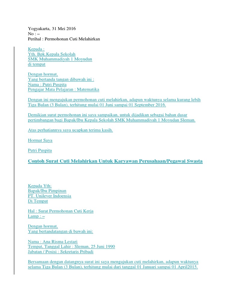 39+ Cara Membuat Surat Izin Cuti Melahirkan Images. Dan kita semua sudah tahu kalau proses melahirkan bukanlah proses yang mudah, membutuhkan banyak tenaga, pengorbanan, persiapan, hingga waktu pemulihan yang lama. Hal ini akan membuat mereka membutuhkan waktu untuk berhenti bekerja atau cuti sementara.