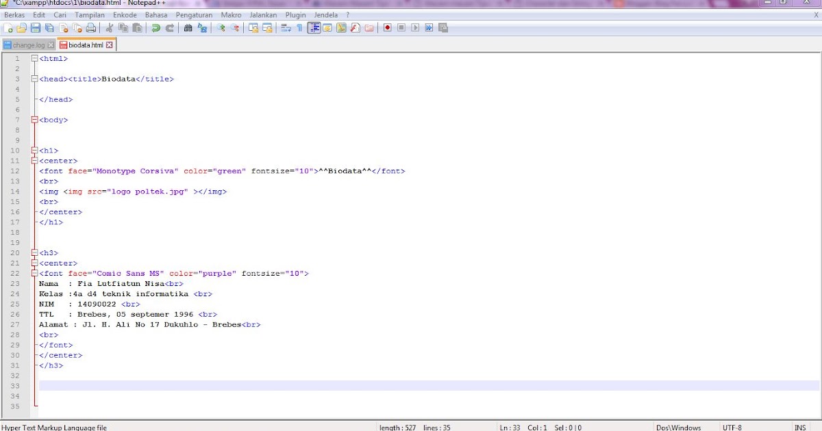 Belajar Dasar HTML: Membuat biodata sederhana |HTML| from 3.bp.blogspot.com